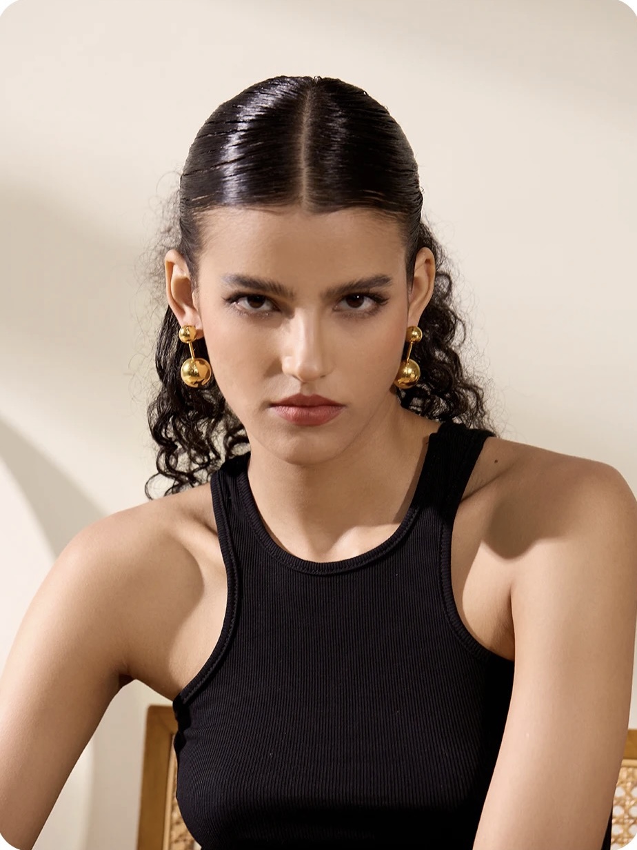 Gefertigt aus Edelstahl mit 18K Vergoldung (PVD-Beschichtung). Das Material ist hypoallergen und auch für empfindliche Haut geeignet – persönlich getestet.